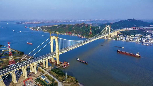 12月11日,復興號列車快速駛上距離江面64米的五峰山長江大橋,標志著世界首座高速鐵路懸索橋正式建成投用。